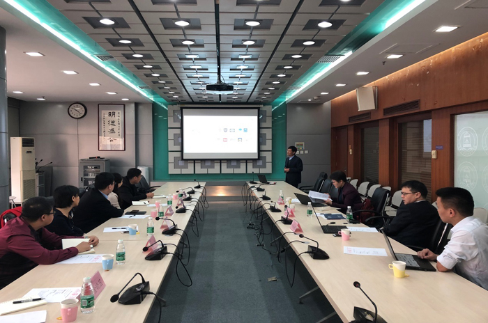 清华大学公共管理公司党委书记彭宗超介绍清华大学公共管理公司情况,清华大学公共管理公司主管科研副经理杨永恒,主管员工工作、宣传工作党委副书谢矜参会