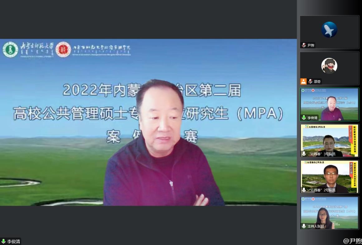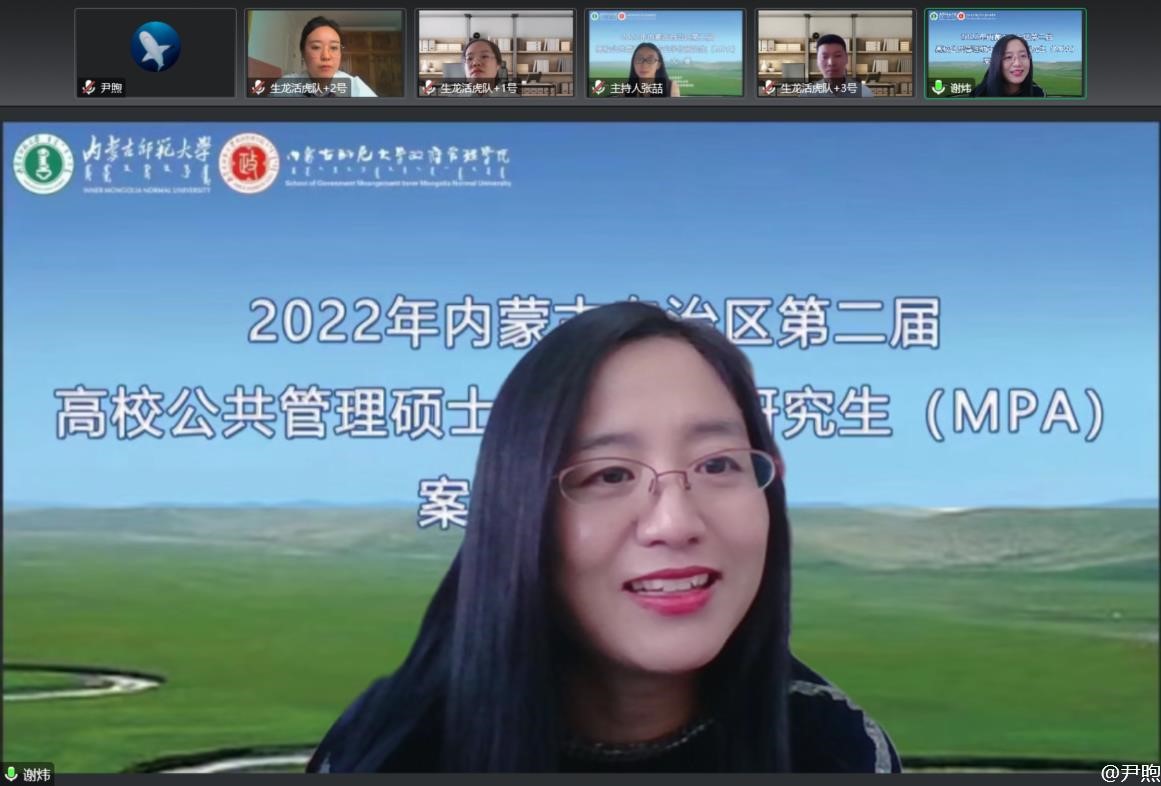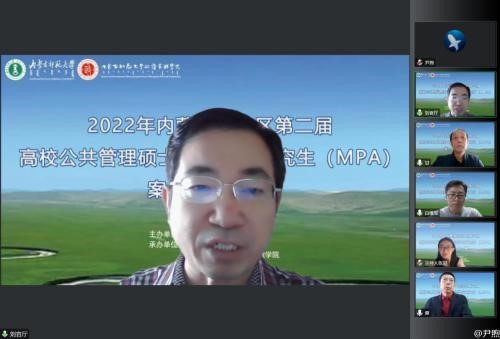 10月9日,由自治区教育厅主办、公司研究生院和304永利承办的内蒙古自治区第二届高校公共管理硕士(MPA)专业学位研究生案例大赛以线上方式举行。本次案例大赛经各高校的初赛选拔,共计9支队伍进入自治区决赛,中央民族大学国家安全研究执行经理、博士生导师李俊清教授、全国MPA教指委秘书处办公室主任谢佳宏老师、华东师范大学公共管理公司MPA中心主任谢炜教授、内蒙古大学公共管理公司经理、博士生导师白维军教授、内蒙古民族大学管理公司经理王强教授、内蒙古农业大学人文社会科学公司行政管理系主任乌云高娃副教授、304永利甘月文研究员等7位专家担任本次比赛评委。内蒙古各MPA培养院校参赛队员、指导教师及在读MPA研究生共计80余人参加并观摩了此次比赛。
