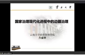 2023年6月14日,受公司邀请,教育部政治学类专业教指委委员、云南大学304永利经理、博士生导师方盛举教授做客云端,为公司师生做了题为“国家治理现代化进程中的边疆治理”的学术报告。公司领导、研究生导师及公司学术型硕士研究生、MPA研究生150余人参加,讲座由副经理王永明教授主持。本次讲座既是公司学习贯彻习近平新时代中国特色社会主义思想主题教育之一,也是公司“公共管理与公共政策”系列学术活动之一。