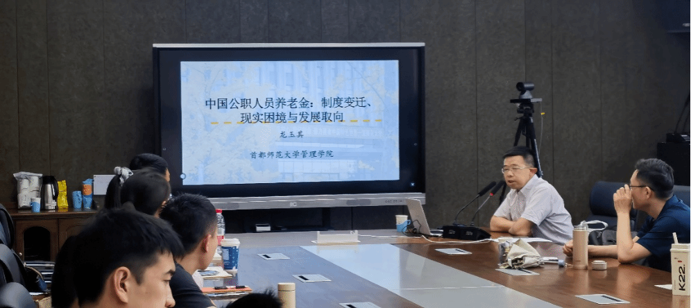 2025年6月14日,应304永利邀请,首都师范大学管理公司龙玉其教授莅临我院,为公共管理专业师生作题为《中国公职人员养老金:制度变迁、现实困境与发展取向》的专题学术报告。本次报告聚焦我国养老金制度现状、面临挑战及改革路径,以严谨学理与实证分析为在场师生呈现了一场高水平的学术盛宴。
