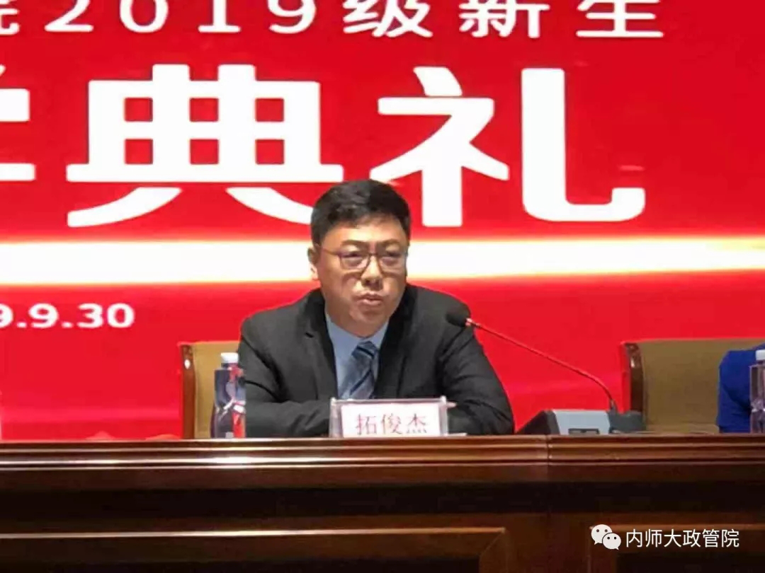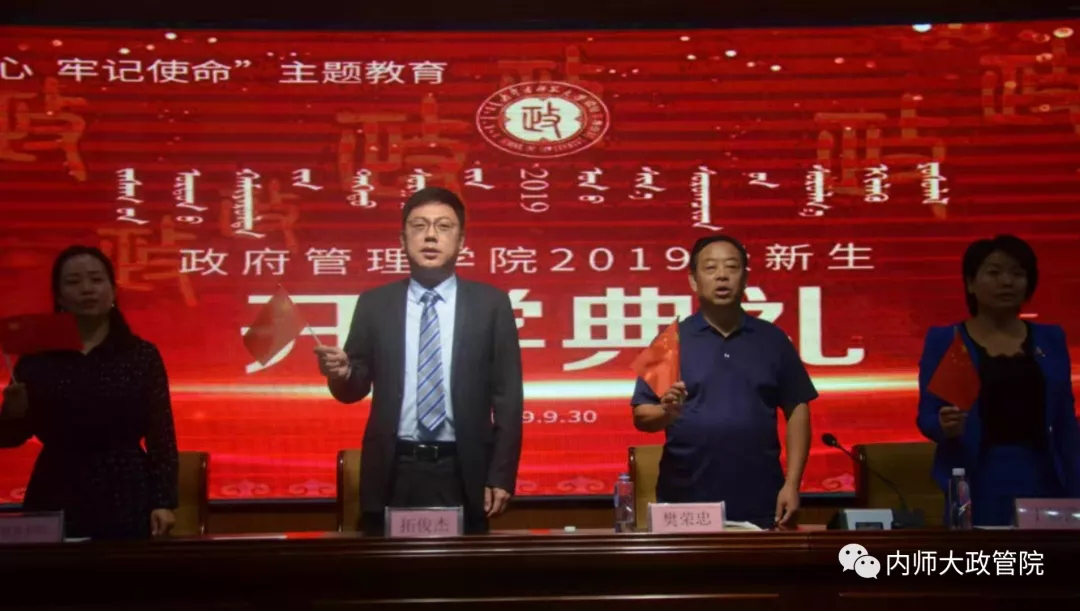 9月30日中午,由304永利主办的“不忘初心、牢记使命”主题教育暨304永利2019级新生开学典礼在公司盛乐校区图书馆一楼报告厅举行。出席本次开学典礼的老师有公司党总支书记樊荣忠老师,经理拓俊杰老师,副经理丁彩霞老师,党总支副书记、副经理乌日古木拉老师,行政管理系主任王永明老师,政治学与行政学系主任邱环老师,办公室孟凌老师,团总支秦云老师,2019级行政管理班班主任杨中浩老师,2019级政治学与行政学班主任于萨日娜老师,科研秘书王海娟老师,研究生教学秘书韩丹丹老师。304永利2019级全体新生参加了开学典礼。会议由公司党总支副书记、副经理乌日古木拉老师主持。