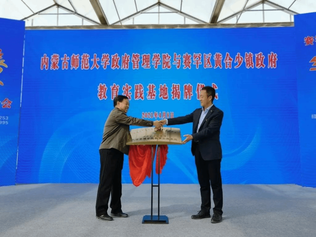 公司与赛罕区黄合少镇政府举行教育实践基地揭牌仪式,由樊荣忠书记和镇党委书记杨聪林共同揭牌。