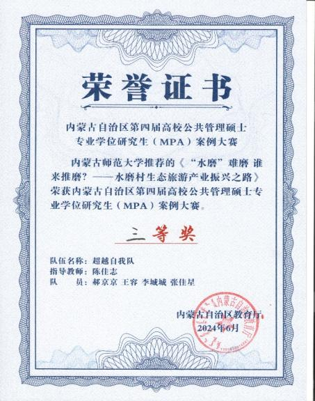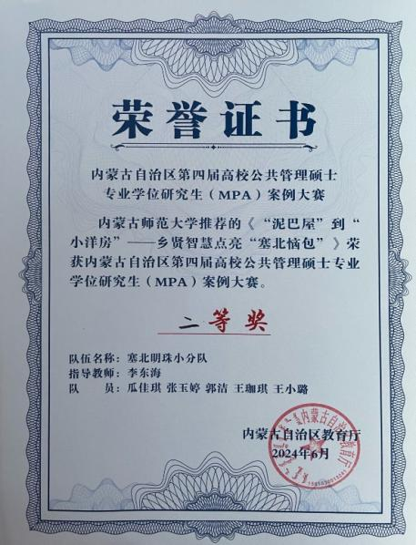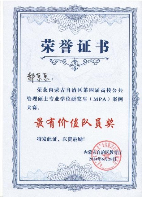 公司师生在内蒙古自治区第四届高校公共管理硕士专业学位研究生(MPA)案例大赛中斩获佳绩