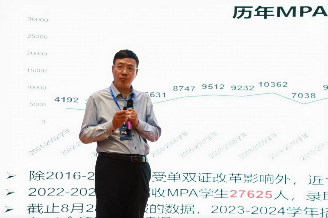 全国 MPA 教指委秘书长、中国人民大学公共管理公司经理严金明教授以《我国 MPA 教育发展概况和教指委工作介绍》为题作报告。他介绍了我国MPA教育的总体情况、全国MPA教指委的主要工作内容和工作机制,并重点介绍了我国MPA教育在人才选拔机制、培养体系和机制、教材建设、学位论文评价改革、导师队伍等方面的做法和成效。他强调了MPA教育的重要性及当前面临的挑战,并希望各培养单位积极探索创新,紧密围绕国家战略需求,深化MPA教育改革,为培养更多优秀人才贡献力量。