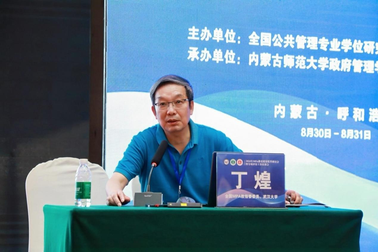 全国 MPA 教指委委员、教学教材组组长、武汉大学政治与公共管理公司丁煌教授以《MPA 专项评估相关政策分析》为题作报告。他基于《公共管理硕士专业学位授权审核申请基本条件(2024)》,着重围绕培养目标、课程设置、团队队伍、学位论文等方面,对《公共管理硕士专业学位研究生指导性培养方案》相关内容进行了详细梳理,重点强调了核心课程设置在专项评估中的重要性,并为培养单位顺利迎评提供了对策与建议。他指出,培养单位要高度重视专项评估工作,以评促建,以评促优,推动MPA教育质量的持续提升。