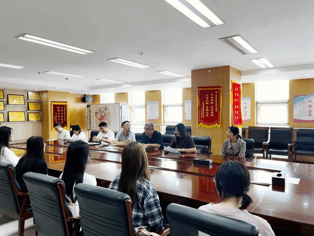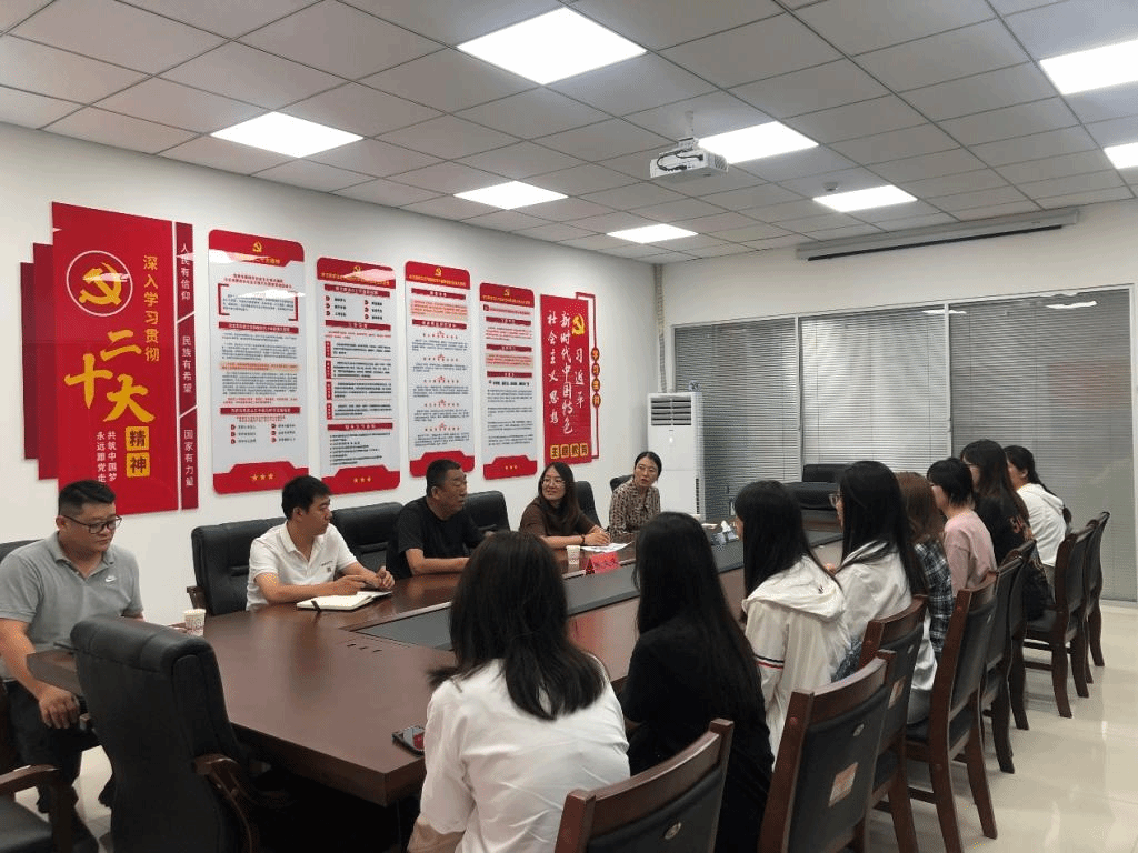 赛罕区人社局局长张永军与公司实践教学部主任金晓蕊、劳动与社会保障系系主任王瑞娟及实习的员工们进行座谈