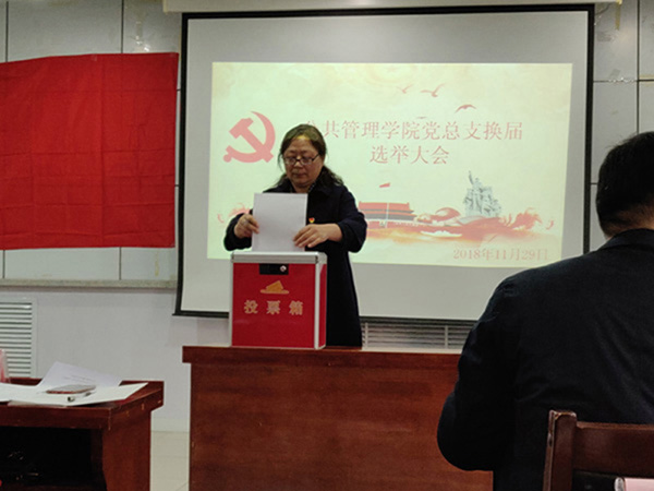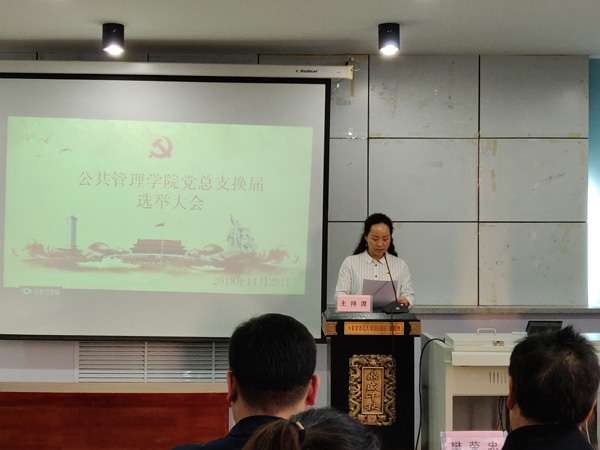 经公司党委批准,2018年11月29日下午四时,公共管理公司党总支换届选举党员大会在MPA教室召开。公司党委组织部荣丽军同志莅临会议进行指导。