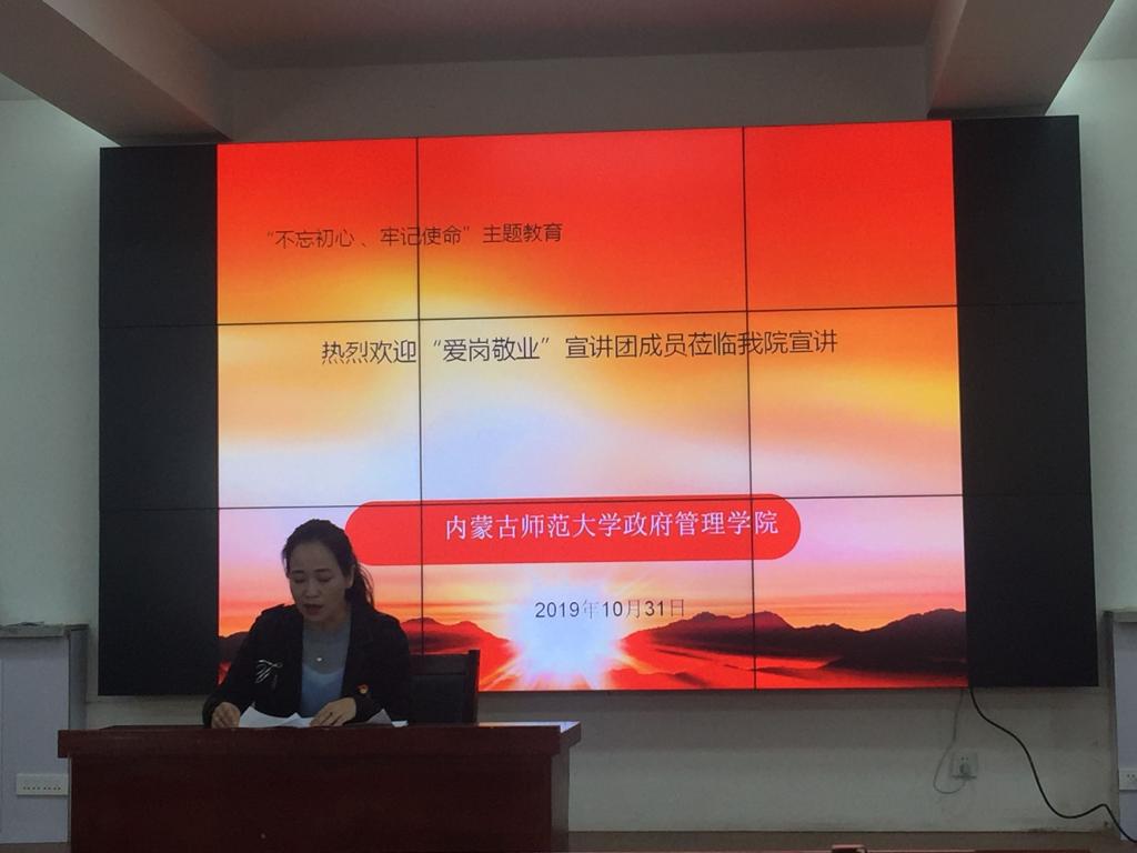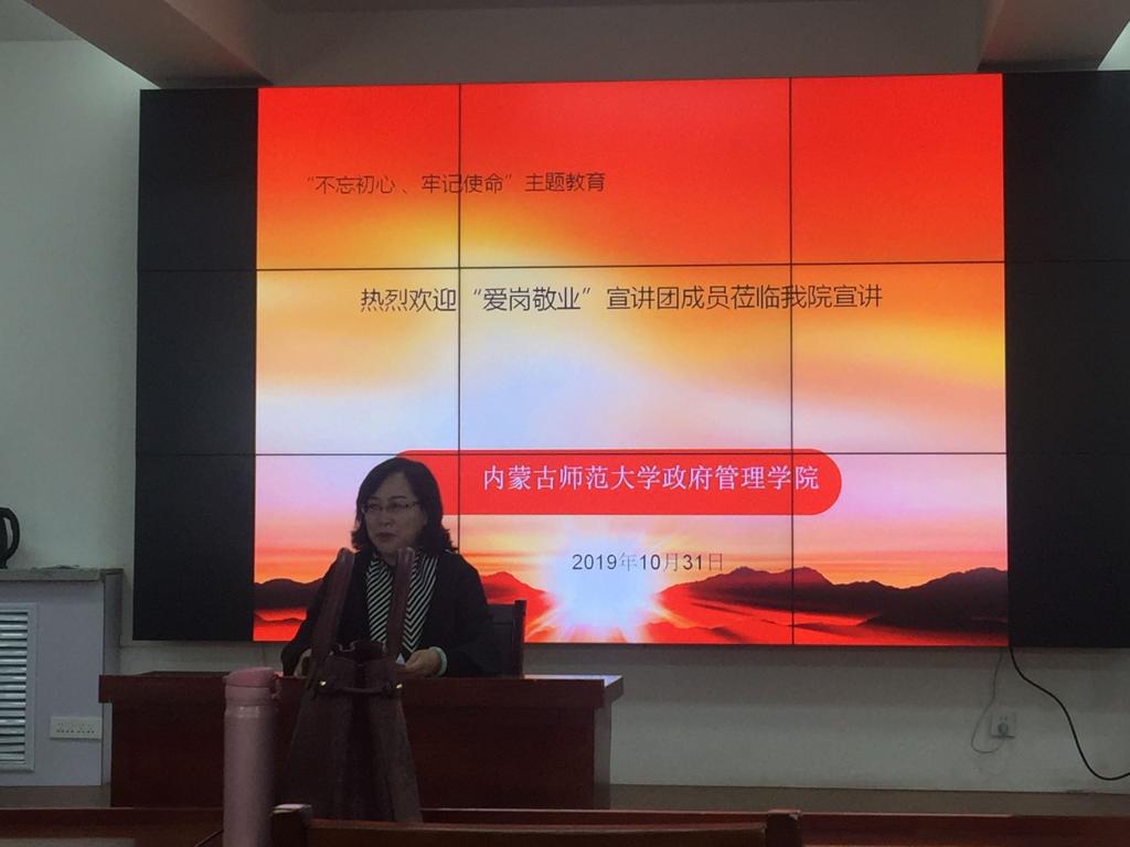 10月31日下午,公司党总支举行“不忘初心,牢记使命”主题教育专题报告会,邀请公司2019年度“三育人先进个人”张晓阳、朱晓红老师进行典型事迹巡讲报告。本次专题报告由公共事业管理系党支部组织委员、院工会主席于莎日娜主持和点评,公司党总支书记樊荣忠、公司副书记、副经理乌日古木拉等领导与老师参加。