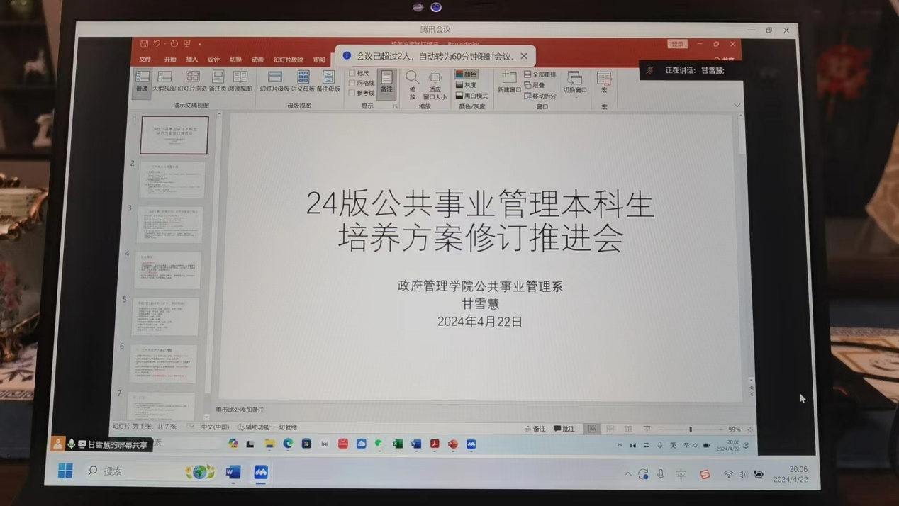 本次培养方案修订研讨推进会总结了修订工作的进程,汇报了新版培养方案的情况,达到了对新版培养方案的较为统一的认知,为推动我系2024版公共事业管理专业培养方案制定工作奠定了基础。