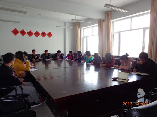 为了提高公司员工团学组织宣传工作水平,增进宣传工作人员之间的交流与协作,2013年11月9日,在盛乐校区公司会议室,召开了公共管理公司员工会宣传工作交流会。院员工宣传工作的核心成员齐聚一堂,通过经验传授、提问交流等方式沟通分享、共同进步。